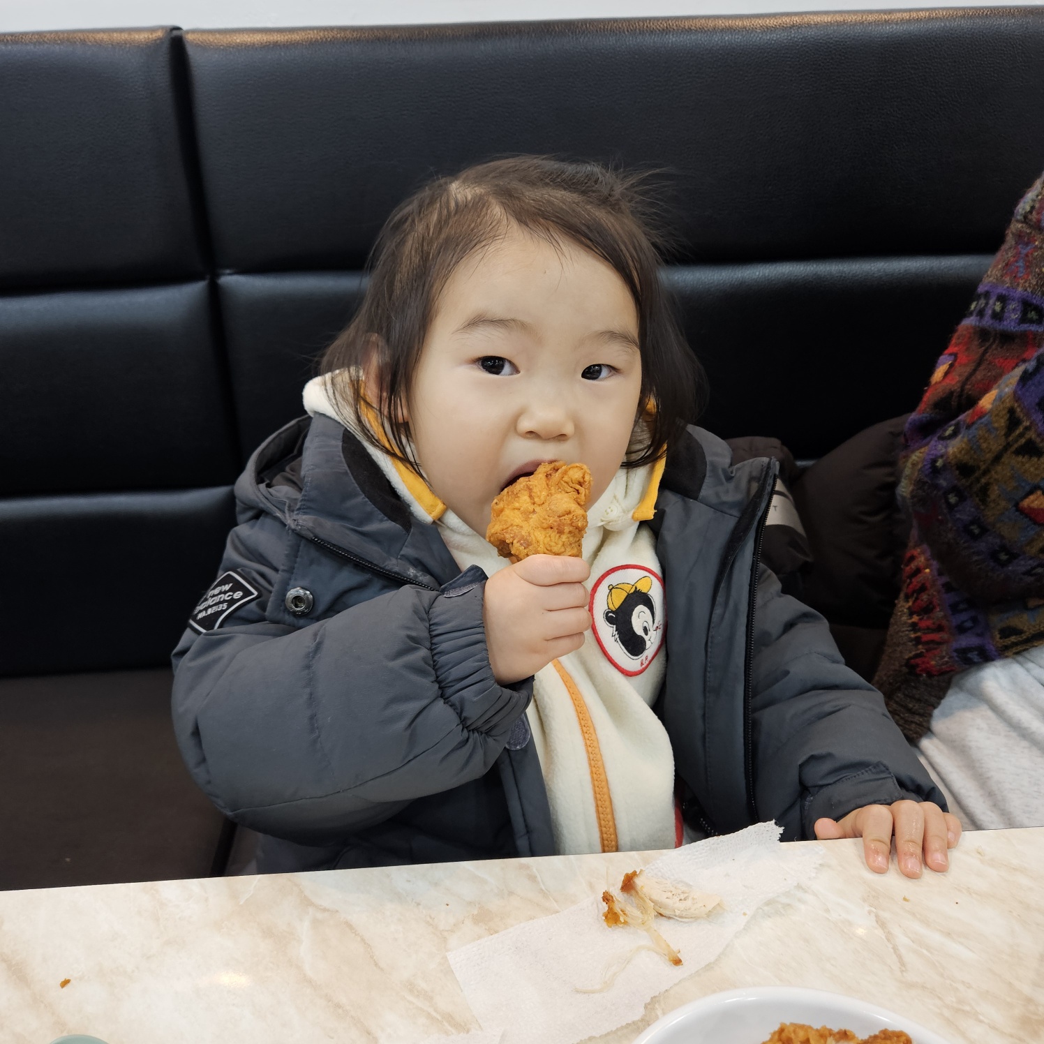결국 아기는 닭살만 주로 떼서 주고, 엄마와 아빠만 맛있게 먹었어요.